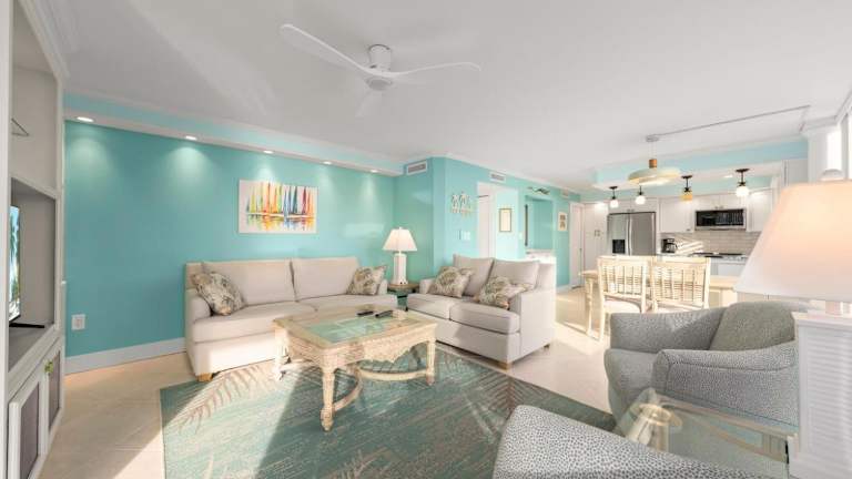 Das Apartment im ISLAND BEACH CLUB 340F ist klimatisiert und verfügt über 2 separate Schlafzimmer, die für eine angenehme Nachtruhe sorgen. Die voll ausgestattete Küche mit Kühlschrank und Geschirrspüler bietet Ihnen die Möglichkeit, Ihre eigenen Mahlzeiten zuzubereiten. In den 2 Bädern finden Sie Handtücher und Bettwäsche vor, so dass Sie sich wie zu Hause fühlen können.