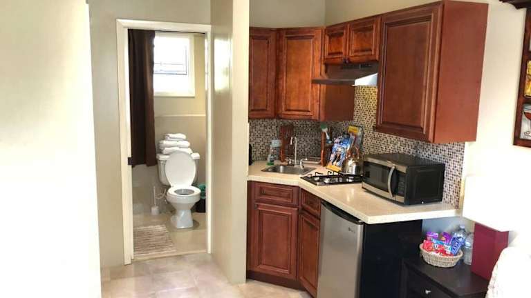 Das Island Retreat Studio #4 in Nassau ist eine ideale Unterkunft für alle, die einen entspannten Aufenthalt in der Nähe des Wasserparks Atlantis Aquaventure suchen. Das Apartment bietet gemütliche Unterkünfte mit einem Garten und einer Terrasse, sowie kostenfreiem WLAN. Mit einem Schlafzimmer, einem Flachbild-TV und einer voll ausgestatteten Küche bietet das klimatisierte Apartment alles, was Sie für einen angenehmen Aufenthalt benötigen. Der internationale Flughafen Lynden Pindling ist nur 14 km entfernt.