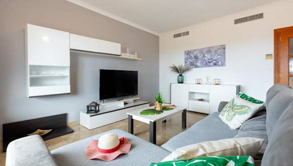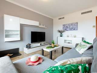 Die Ferienwohnung umfasst drei Schlafzimmer und ein Wohnzimmer. Die voll ausgestattete Küche ist mit einem Kühlschrank und einer Kaffeemaschine ausgestattet. Zusätzlich stehen zwei Badezimmer mit einem Bidet und einem Haartrockner zur Verfügung. Ein Flachbild-TV ist ebenfalls vorhanden. Klimaanlage sorgt für einen angenehmen Aufenthalt.