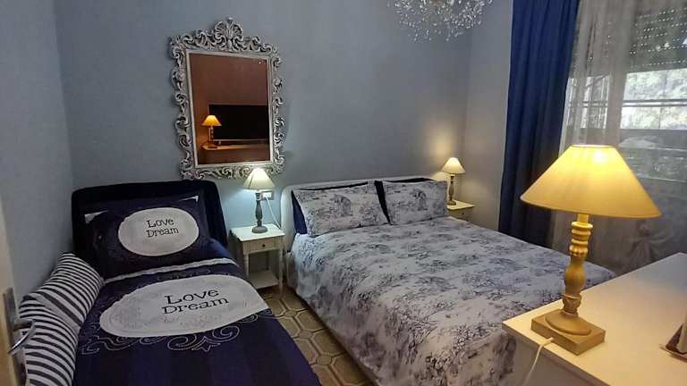Die Ferienwohnung verfügt über einen Balkon mit Gartenblick, zwei Schlafzimmer, ein Wohnzimmer, einen Flachbild-Kabel-TV sowie eine gut ausgestattete Küche. Das Badezimmer ist mit einem Bidet und einer Dusche ausgestattet. Handtücher und Bettwäsche werden bereitgestellt.