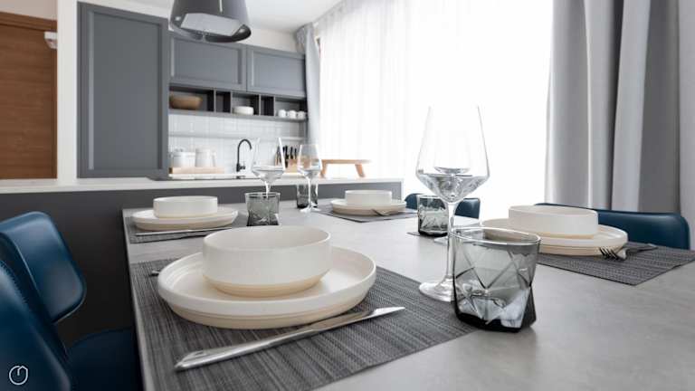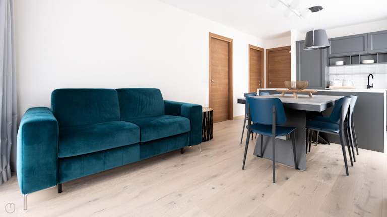 Die Ferienwohnung besteht aus zwei Schlafzimmern, einem Wohnzimmer und einer voll ausgestatteten Küche, die mit einem Kühlschrank und einem Wasserkocher ausgestattet ist. Es sind außerdem zwei Badezimmer mit Bidet und Dusche vorhanden. Handtücher und Bettwäsche werden bereitgestellt.