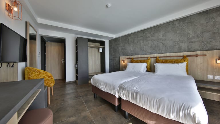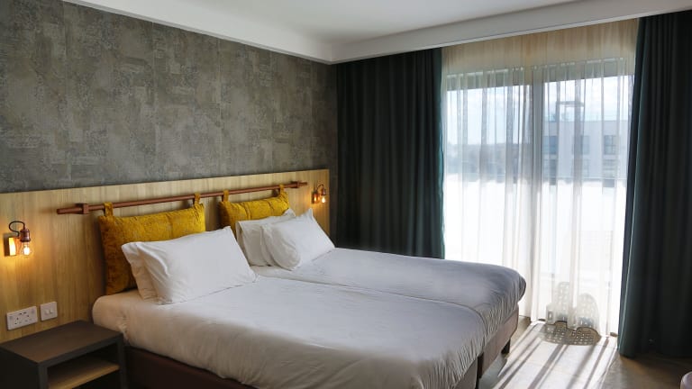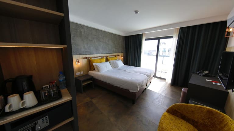 Die Zimmer sind klimatisiert und verfügen über einen Balkon oder eine Terrasse. Zusätzliche Annehmlichkeiten sind ein Doppelbett, eine Minibar, ein Safe, ein Schreibtisch, eine Tee-/Kaffeemaschine und ein TV. Im Badezimmer gibt es eine Dusche, Haartrockner und Kosmetikartikel. Alle Zimmer sind Nichtraucherzimmer.