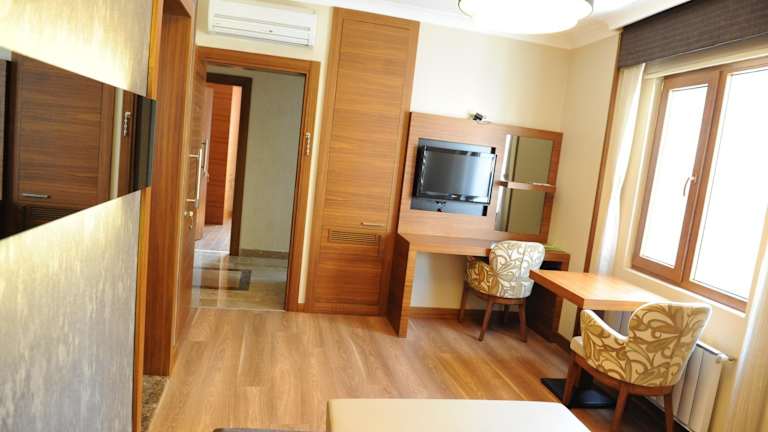 Die Zimmer im Izmit Saray Hotel sind modern und elegant eingerichtet. Jedes Zimmer verfügt über Parkettboden, einen TV, einen Safe und eine Minibar. Im eigenen Badezimmer finden Sie kostenfreie Pflegeprodukte vor. Kostenloses WLAN ist in allen Zimmern verfügbar.