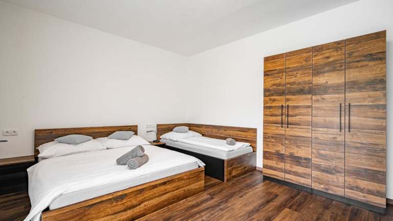 Die Apartments verfügen über einen Balkon, einen Sitzbereich, einen Flachbild-TV sowie eine voll ausgestattete Küche mit Kühlschrank, Geschirrspüler, Ofen, Mikrowelle, Herdplatte, Kaffeemaschine und Wasserkocher. Ein eigenes Badezimmer mit Dusche und Haartrockner ist ebenfalls vorhanden.