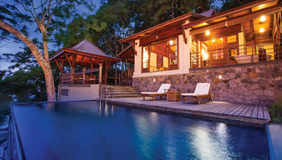 Versteckt auf einer eigenen Privatinsel bietet dieses exklusive 5-Sterne-Hideaway nur 13 Unterkünfte, umgeben von üppigem tropischem Grün, beeindruckenden Granitfelsen und feinem weißen Sandstrand. Jede Private Pool Villa garantiert absolute Privatsphäre mit direktem Zugang zum Strand und schafft so ein Gefühl vollkommener Abgeschiedenheit und Ruhe. Das Resort verfügt über zehn Private Pool Villen, zwei Hilltop Lodge Zimmer und eine Hilltop Villa, die alle mit viel Liebe zum Detail gestaltet wurden und entspannten Luxus mit authentischem Inselcharme verbinden. Gäste können am großen Infinity-Pool entspannen oder sich im Hilltop Spa erholen, das mit einem atemberaubenden Panoramablick über den Indischen Ozean begeistert. Das Spa verfügt über einen Behandlungsraum, der sich sowohl für Einzel- als auch Paarmassagen eignet – ein Ort der Ruhe und des Wohlbefindens inmitten dieses Inselparadieses.