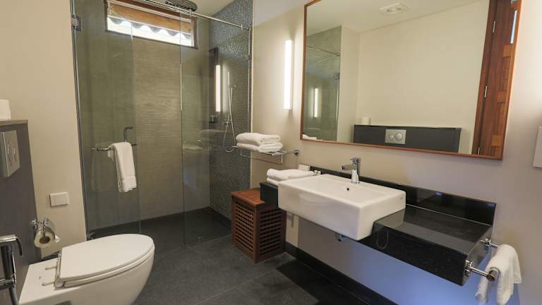 Die Zimmer im JA Enchanted Waterfront Seychelles sind komfortabel und modern eingerichtet. Sie verfügen über eine Klimaanlage, einen Schreibtisch, eine Kaffeemaschine, eine Minibar, einen Safe, einen TV und ein eigenes Bad mit Dusche. Einige Zimmer bieten zudem einen Balkon mit Meerblick und eine voll ausgestattete Küche.