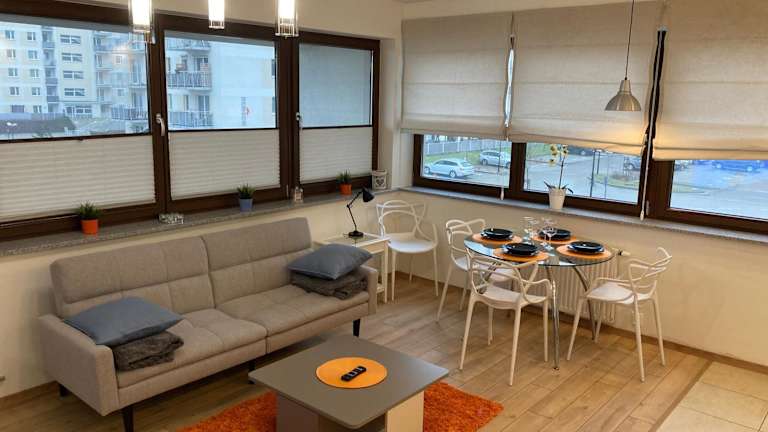 Die Unterkunft befindet sich in Stettin, in der Nähe von Bahnhof Szczecin-Lękno (1,6 km) und Szczecin-Niebuszewo Train Station (1,7 km). Die Universität Stettin ist 2,9 km und die Hakenterrasse 4,2 km entfernt. Der Flughafen Stettin-Goleniów ist 48 km von der Unterkunft entfernt.