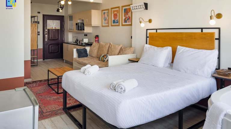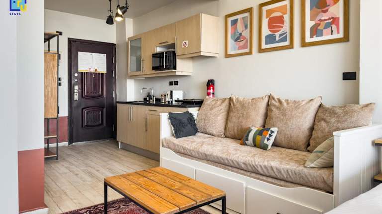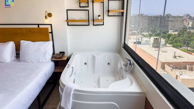 Jacuzzi Studio By The Historic Pyramids Apt4 bietet Übernachtungsmöglichkeiten in Kairo mit Zugang zu einem Whirlpool. Die Unterkunft ist klimatisiert und verfügt über 1 Schlafzimmer und 1 Badezimmer. Die Rezeption ist rund um die Uhr besetzt und Mitarbeiter sprechen Arabisch und Englisch.