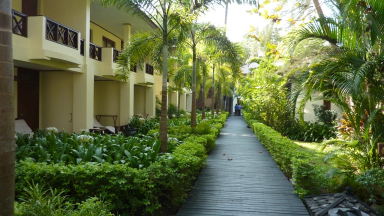 Empfehlungen ansehenälteres Resorthotel an schönem Strandabschnitt