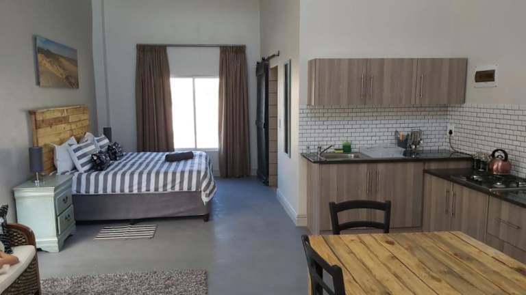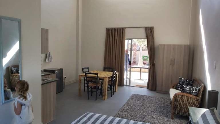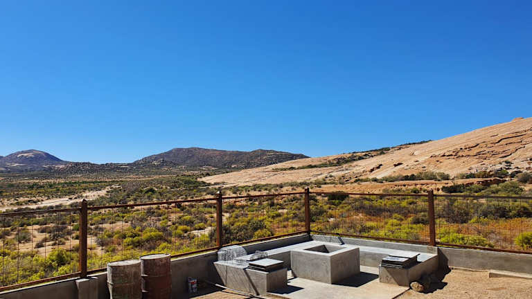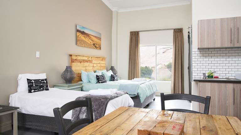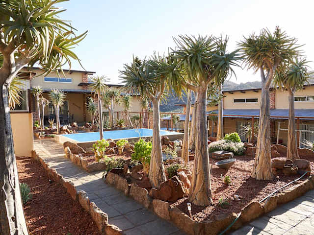 Die Pension Jakkalswater Guest Farm ist ein idyllischer Rückzugsort, der von den majestätischen Pisten und Granitfelsen des Kamiesbergs umgeben ist. Nur 16 km von Springbok entfernt, bietet diese Unterkunft eine einzigartige Erfahrung abseits des Stromnetzes, mit Solarenergie, einem Wasserbrunnen und Gasgeräten. Genießen Sie den Außenpool, erkunden Sie die Umgebung beim Wandern oder Radfahren, oder entspannen Sie einfach im Garten und nutzen Sie die Grillmöglichkeiten. Hier erwartet Sie eine naturnahe Oase der Ruhe und Entspannung.