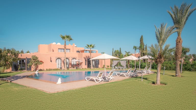 Das Janat Al Atlas in Marrakesch bietet seinen Gästen einen erholsamen und komfortablen Aufenthalt in einer entspannten Atmosphäre. Mit einem Fitnesscenter, einem schönen Garten und einer Sonnenterrasse mit Pool wird für genügend Entspannung und Freizeitmöglichkeiten gesorgt. Das Hotel bietet ein kontinentales Frühstück am Morgen sowie ein Restaurant und Zimmerservice für das leibliche Wohl der Gäste. Mit kostenfreiem WLAN, einer 24-Stunden-Rezeption und Flughafentransfers wird ein hoher Service-Standard geboten. Die Zimmer sind komfortabel eingerichtet und verfügen über ein eigenes Bad, einen TV und Klimaanlage. Einige Zimmer bieten zudem einen separaten Sitzbereich. Spa- und Wellnesseinrichtungen wie ein Hamam und Massagen sind auf Anfrage verfügbar. Das Hotel liegt in der Nähe von verschiedenen Sehenswürdigkeiten und der Flughafen ist ebenfalls gut erreichbar.