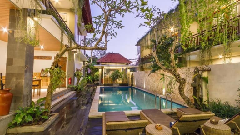 Das Jani's Place Cottage in Ubud bietet seinen Gästen eine authentische balinesische Erfahrung in einer traditionellen Unterkunft. Mit kostenfreiem WLAN, einem Außenpool und einer Sonnenterrasse können Sie hier in Ruhe entspannen. Die Zimmer sind klimatisiert und verfügen über einen Flachbild-Sat-TV. Das Hotel bietet auch einen Restaurant-Service und verschiedene Dienstleistungen wie Massagen, Wäsche- und Reinigungsservice sowie Flughafentransfers. Die Umgebung bietet viele Möglichkeiten für Freizeitaktivitäten wie Radfahren und Wandern.