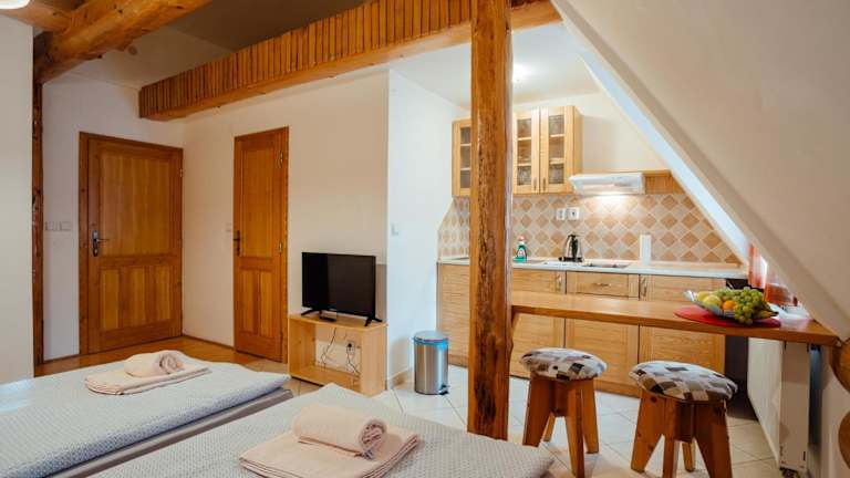 Die Jánošíkova Valaška Hills Apartments befinden sich in Terchová, nur 40 km von der Burg Orava entfernt. In der Nähe finden Sie auch die Burgen Budatin, Lietava und Likava. Die Lage ist ideal für Ausflüge und Erkundungen der historischen Sehenswürdigkeiten. Der nächstgelegene Flughafen, Ostrava, ist ca. 122 km entfernt.