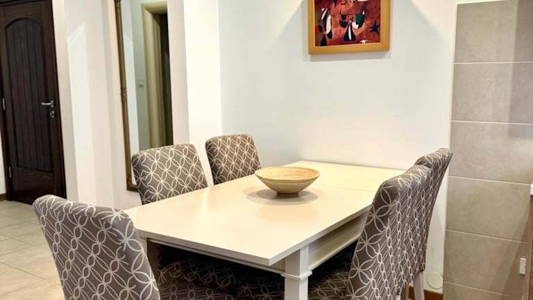 Die Ferienwohnung besteht aus einem separaten Schlafzimmer, einem Wohnzimmer, einer voll ausgestatteten Küche und einem Badezimmer. Zur Ausstattung gehört ein Flachbild-TV.