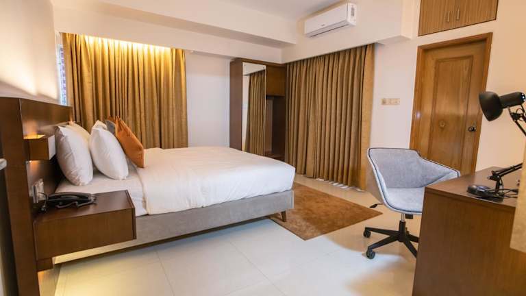 Die Zimmer im Jatra Flagship Khulna City Centre sind komfortabel und modern eingerichtet. Jedes Zimmer verfügt über eine Klimaanlage, einen Schreibtisch, einen Flachbild-TV und ein eigenes Badezimmer. Sie können sich auf eine erholsame Nacht in einem gemütlichen Bett freuen und den Stadtblick vom Balkon aus genießen. Ein Kühlschrank steht ebenfalls zur Verfügung, um Ihre Getränke und Snacks kühl zu halten.