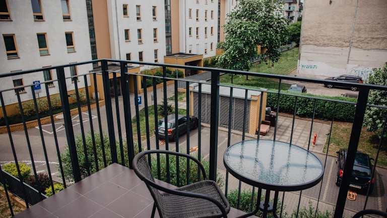 Die Ferienwohnung verfügt über ein Schlafzimmer, ein Wohnzimmer, eine gut ausgestattete Küche sowie ein Badezimmer mit Dusche. Zur Ausstattung gehören ein Balkon mit Stadtblick und ein Flachbild-TV. Handtücher und Bettwäsche können gegen Aufpreis bereitgestellt werden.