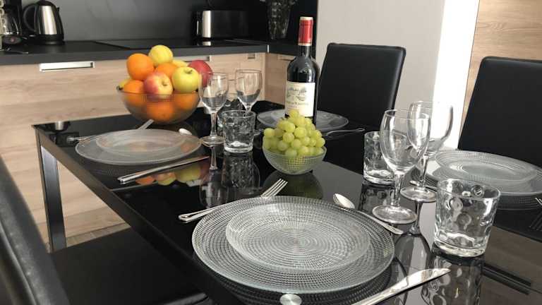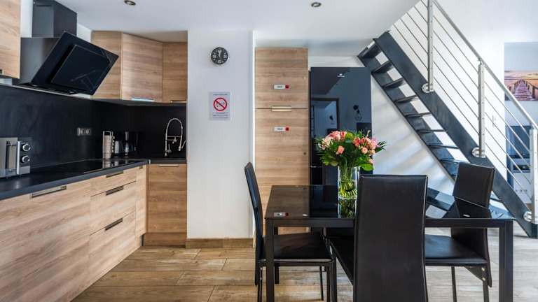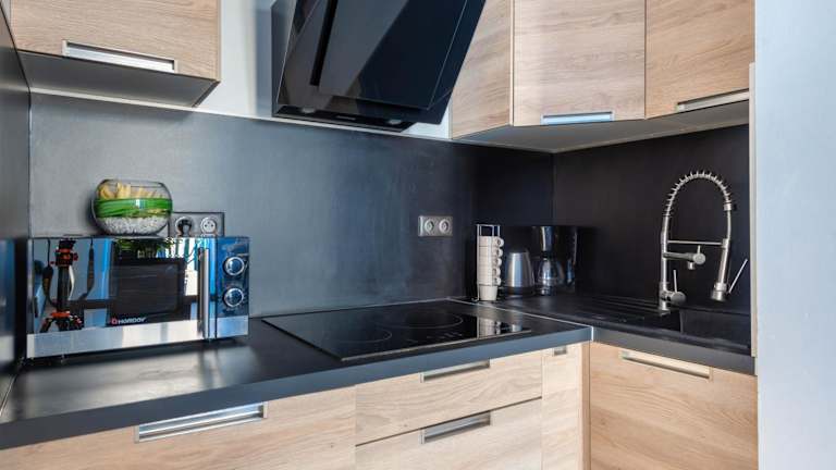Die Unterkunft verfügt über eine voll ausgestattete Küche mit einem Kühlschrank und einer Kaffeemaschine, die den Gästen die Möglichkeit gibt, eigene Mahlzeiten zuzubereiten. Weitere Verpflegungsmöglichkeiten sind in der Umgebung zu finden.