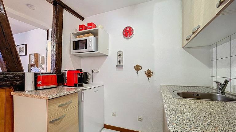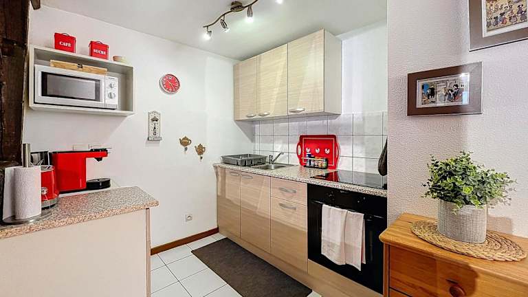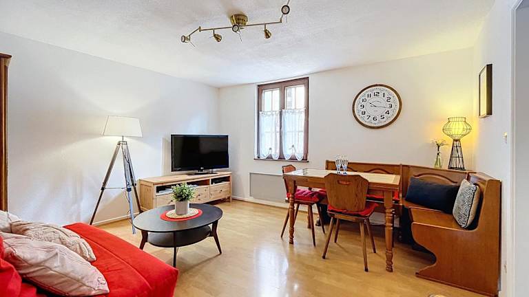 Die Ferienwohnung besteht aus einem Schlafzimmer, einem Wohnzimmer und einer vollständig ausgestatteten Küche, die mit einem Kühlschrank und einer Kaffeemaschine ausgestattet ist. Des Weiteren gibt es ein Badezimmer mit einer Dusche und einem Haartrockner. Handtücher und Bettwäsche werden zur Verfügung gestellt. Auch allergikerfreundliche Zimmer sind verfügbar.