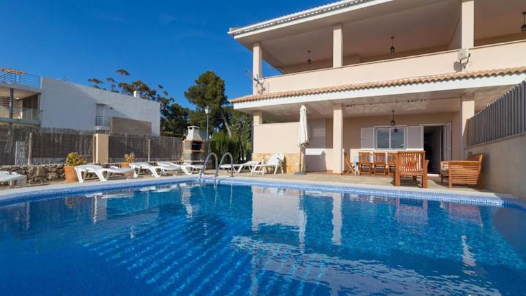 Das Jeronimo in Playa de Muro ist eine ideale Unterkunft für einen entspannten Urlaub. Mit einem Außenpool, einem Garten und einer Terrasse können Sie die Sonne und die schöne Umgebung genießen. Das kostenfreie WLAN und der Poolblick sorgen für zusätzlichen Komfort. Das Chalet ist klimatisiert und bietet mit 4 Schlafzimmern, einem Wohnzimmer und einer voll ausgestatteten Küche genügend Platz für die ganze Familie. Die Nähe zu den beliebten Stränden Playa de Muro, Port d'Alcudia und Es Comu macht diese Unterkunft noch attraktiver.
