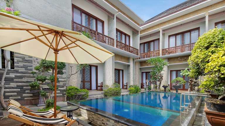 Das Jineswari Kuta by Kamara bietet Übernachtungsmöglichkeiten in einer Gartenanlage und verfügt über einen Außenpool. Die Unterkunft ist klimatisiert und bietet kostenfreies WLAN in allen Bereichen. Die Rezeption ist rund um die Uhr besetzt und das Hotel umfasst Nichtraucherzimmer sowie eine Terrasse.