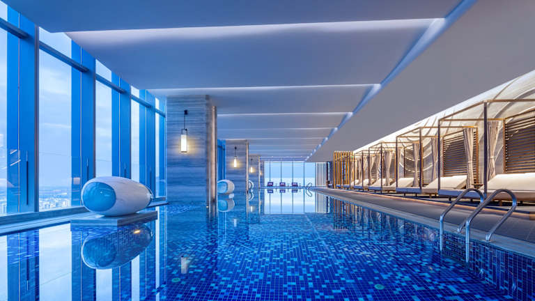 Modernes Hotel in den oberen Etagen mit beeindruckender Aussicht