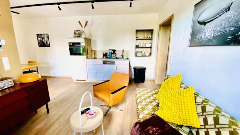 Die Ferienwohnung bietet ein Schlafzimmer, ein Wohnzimmer, einen Flachbild-TV sowie eine gut ausgestattete Küche mit Kühlschrank und Geschirrspüler. Zudem gibt es ein Badezimmer mit Dusche. Handtücher und Bettwäsche sind in der Unterkunft vorhanden.
