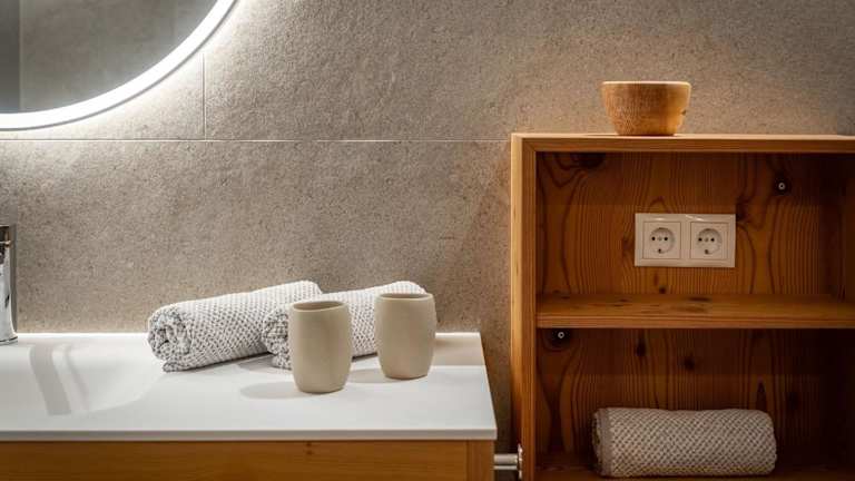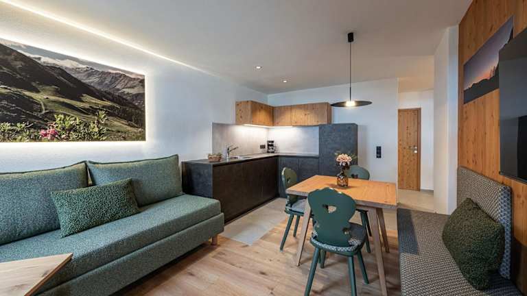 Die Zimmer der Unterkunft verfügen über einen Balkon mit Bergblick, einen Sitzbereich, einen Flachbild-TV sowie eine voll ausgestattete Küche mit Kühlschrank und Herdplatte. Jedes Zimmer bietet ein eigenes Badezimmer, das mit einem Bidet und einem Haartrockner ausgestattet ist.
