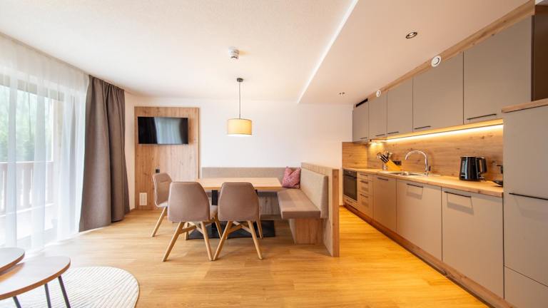 Die Unterkünfte sind ausgestattet mit kostenlosem WLAN, einem Flachbild-TV und einem eigenen Badezimmer mit Dusche und kostenlosen Pflegeprodukten. Eine Küche mit Kühlschrank, Geschirrspüler und Ofen ist ebenfalls vorhanden. Einige Wohneinheiten bieten eine Terrasse oder einen Balkon, die entweder mit Berg- oder Gartenblick ausgestattet sind. Nichtraucherzimmer stehen bereit.