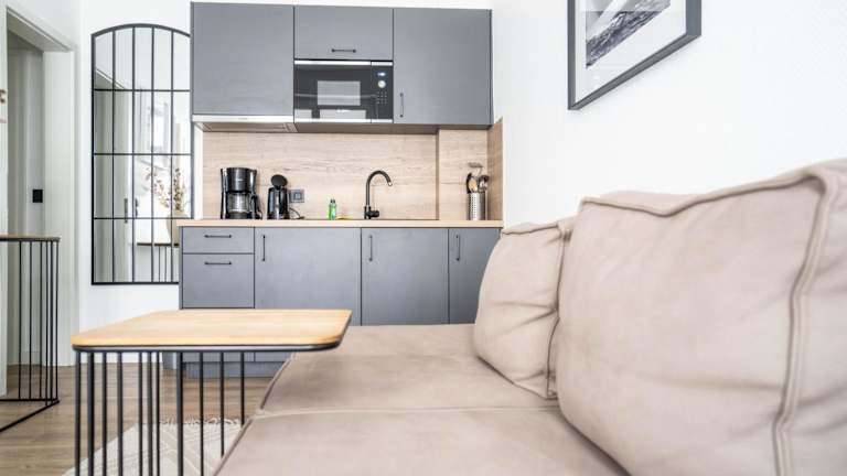 Die Ferienwohnung beinhaltet ein Schlafzimmer und ist mit einem TV ausgestattet. Die Küche bietet einen Kühlschrank und einen Ofen. Handtücher und Bettwäsche werden bereitgestellt.