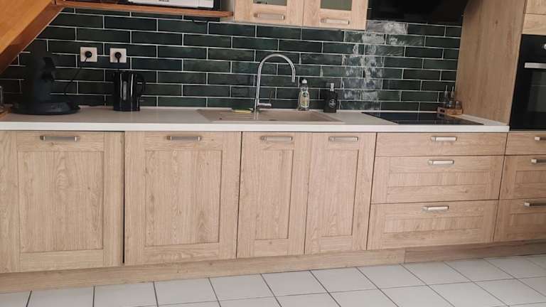 Die Unterkunft verfügt über eine voll ausgestattete Küche mit Kühlschrank und Kaffeemaschine.