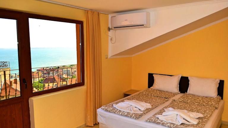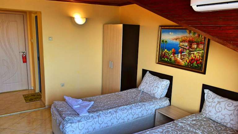 Das Joro Guest House befindet sich in Sweti Vlas und bietet eine ideale Lage für Strandliebhaber. Der neue Strand Sveti Vlas ist nur 700 m entfernt und der zentrale Strand und der Strand Venid sind ebenfalls leicht zu Fuß erreichbar. Die Pension bietet auch einen herrlichen Blick auf das Meer. In der Umgebung gibt es auch interessante Attraktionen wie den Action AquaPark und das Luftfahrtmuseum, die einen Besuch wert sind. Der Flughafen Burgas ist bequem in 35 km Entfernung erreichbar.