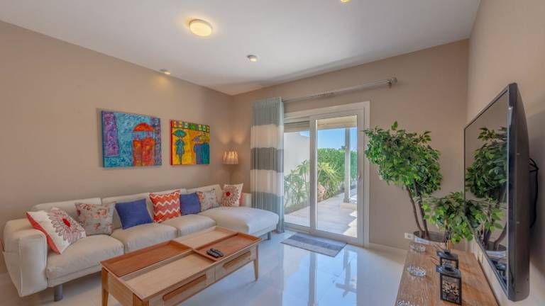 Die Villa bietet eine Küche, die mit einem Kühlschrank und einem Ofen ausgestattet ist. Zudem sind ein Flachbild-TV und ein Sitzbereich vorhanden.