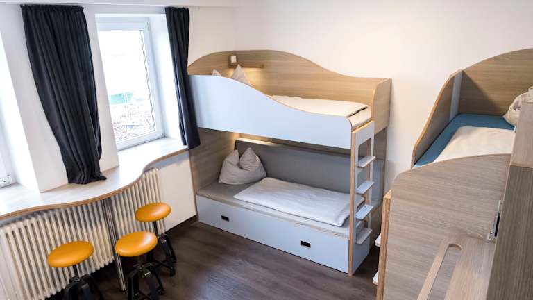 Die Jugendherberge bietet 2- bis 6-Bettzimmer mit Dusche/WC. Die 3 Panoramadorms sind mit 8-Bettzimmern eingerichtet, verfügen über einen tollen Ausblick und sind ideal für preisbewusste Backpacker. Die Dorms sind geschlechtlich gemischt und für Gäste ab 18 Jahren. Alle Zimmer sind Nichtraucherzimmer und mit Stockbetten ausgestattet. Für die Sicherheit sorgen ein Keycardsystem, sowie abschließbare Schränke auf den Zimmern. Hinweis: DJH-Mitgliedskarte erforderlich.