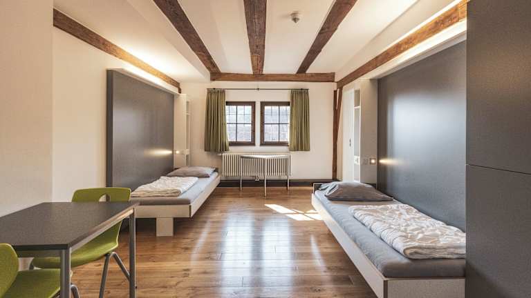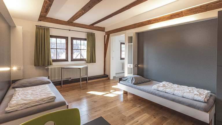 Die Jugendherberge Dinkelsbühl verfügt über komfortable Zimmer mit eigener Dusche und WC. Bettwäsche ist im Zimmerpreis enthalten, während Handtücher gegen eine geringe Gebühr gemietet werden können. Die Zimmer bieten eine gemütliche Atmosphäre und sind ideal für Familien und Gruppen.
