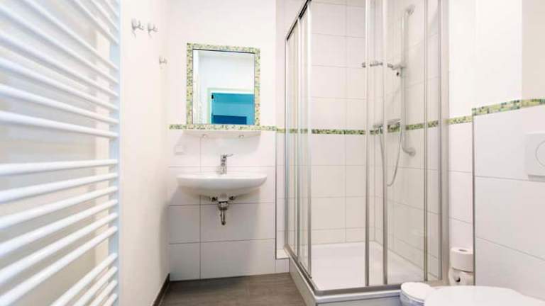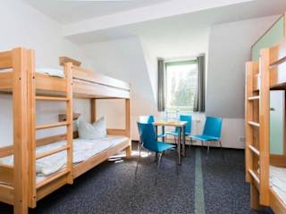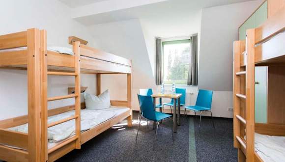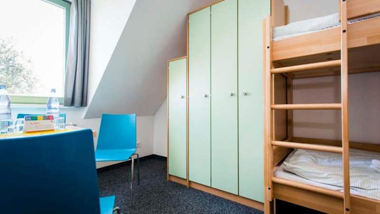 Die Zimmer der Jugendherberge sind mit einem Kleiderschrank ausgestattet und verfügen über ein eigenes Badezimmer sowie Bettwäsche.
