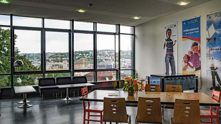 Besonderheiten der Jugendherberge Stuttgart International: - zentrale Lage in Halbhöhe mit Blick über die Stadt - barrierefreies Angebot - Bett + Bike zertifiziert - umfassendes Angebot an Tagungsräumen und -technik Zudem ist die Jugendherberge mit dem Profil "Jugendherberge|International" zertifiert. Gäste aus aller Welt können folgendes erwarten: - Spezielle Programmangebote für internationale Besucher. - Insider-Tipps helfen, Stadt, Land und Leute kennen zu lernen. - TouristPoint als zentrale Anlaufstelle für die Reisenden. - Offener Empfangsbereich mit freundlichen und sprachkompetente Mitarbeitern. - Bistro und gemütlich gestaltete Sitzecken fördern den Austausch von Erfahrungen. - Internetzugang.