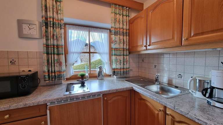 Die Unterkunft verfügt über eine Küche, die mit einem Kühlschrank, einer Mikrowelle, einer Herdplatte, einer Kaffeemaschine sowie einem Wasserkocher ausgestattet ist. Somit haben die Gäste die Möglichkeit, sich eigene Mahlzeiten zuzubereiten.