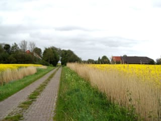 Unser Hof liegt inmitten der Felder der ostfriesischen Marsch, ruhig ohne Autoverkehr. Neben dem Spielplatz steht ein Gewächshaus, dieses wird zum Teil als sonnendurchschienener Aufenthaltsraum genutzt, im anderen Teil wachsen im Sommer Tomaten und Gurken. Die Kinder spielen gerne auf dem grossen Spielplatz mit Sandkasten, Schaukeln, Rutsche und Baumhaus. Hier lernen sich auch die Eltern kennen, oft wird ein gemeinsamer Ausflug z.B. zur Seehundaufzuchtstation oder an den Strand geplant. Es gibt viele Ausflugsziele: Schiffsausflüge zu den Inseln Norderney, Juist, Baltrum, Helgoland u. a. Wattwandern mit dem Wattführer, Fischerort Greetsiel, Seehafenstadt Emden, Heimat- und Teemuseum in Norden, Moormuseum in Moordorf, Schloss Lütetsburg und die Burg in Dornum, Ewiges und Grosses Meer.