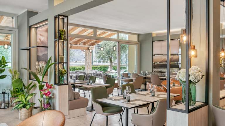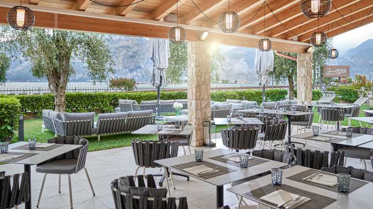 Im June Beach Restaurant & Bar genießen Gäste moderne mediterrane Küche in entspannter Atmosphäre. Morgens wird ein vielfältiges Frühstück serviert, tagsüber leichte Speisen und Snacks, abends regionale Gerichte, Weine und Cocktails. Die Terrasse mit Blick auf den Gardasee lädt zum Verweilen ein – vom ersten Kaffee bis zum Sonnenuntergang.