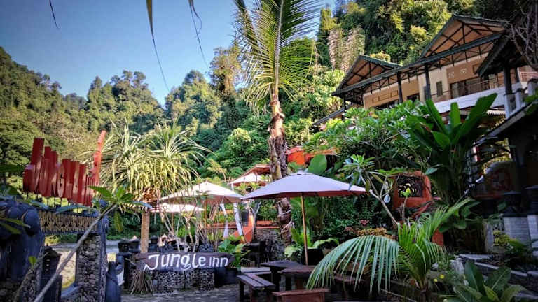 Die Zimmer im Jungle Inn Bukit Lawang sind einfach, aber komfortabel eingerichtet und bieten einen Balkon mit Garten- oder Flussblick. Jedes Zimmer verfügt über ein eigenes Bad mit Dusche. Bettwäsche und Handtücher werden gestellt, um Ihren Aufenthalt so angenehm wie möglich zu gestalten. Kostenfreies WLAN steht Ihnen in allen Zimmern zur Verfügung.