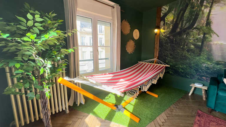 Das Jungle Urbain- Sauna - Ciné - Hamac - Hyper centre bietet Übernachtungsmöglichkeiten in einer modernen, voll ausgestatteten Ferienwohnung. Die Unterkunft zeichnet sich durch eine Sauna aus und bietet Stadtblick sowie kostenlose WLAN-Verbindung.