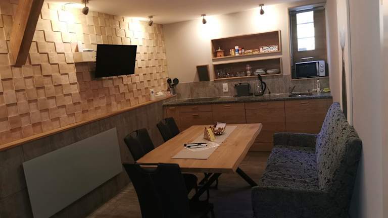 Im Jupi Hüsli gibt es eine Bar, in der die Gäste entspannen und den atemberaubenden Blick auf die Berge genießen können. Es gibt auch die Möglichkeit, in der gut ausgestatteten Küche des Ferienhauses selbst zu kochen.