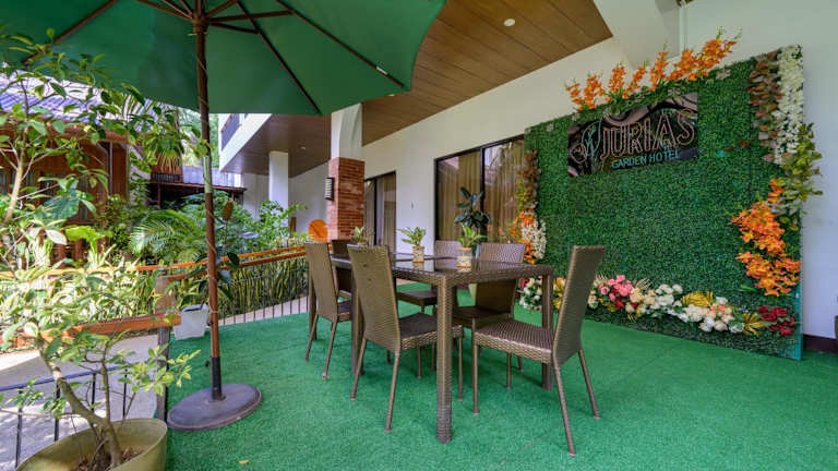 Das Jurias Garden Hotel ist eine moderne Unterkunft, günstig gelegen und nur wenige Gehminuten von den Stränden Corong Corong und El Nido sowie der Stadt El Nido entfernt. Die Zimmer sind komfortabel und klimatisiert, mit einem eigenen Balkon und einem eigenen Bad ausgestattet. Das Hotel bietet kostenfreie Parkplätze, einen Wäscheservice und die Möglichkeit, Besichtigungstouren zu organisieren. Genießen Sie die entspannte Atmosphäre und die schöne Aussicht auf den Berg Taraw und den Strand Corong-corong.