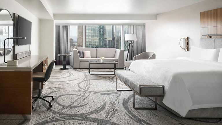 Die Zimmer im JW Marriott Los Angeles L.A. LIVE sind luxuriös und modern eingerichtet. Jedes Zimmer verfügt über Annehmlichkeiten wie einen 42-Zoll-Flachbild-TV, WLAN, eine iPod-Dockingstation, einen Minikühlschrank und Kaffee- und Teezubehör. Der Zimmerservice steht Ihnen rund um die Uhr zur Verfügung, um sicherzustellen, dass Ihr Aufenthalt so angenehm wie möglich ist.