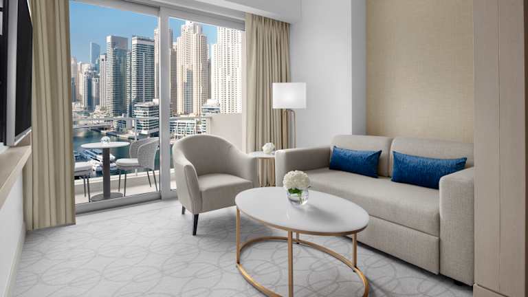 The luxurious guestrooms of JW Marriott Hotel Marina are the first port of call for our discerning guests: a space to lie back and unwind amidst the finest linens and immaculately designed furnishing. The hotel’s 200 stylish hotel rooms and suites offer the perfect balance of luxury and comfort. Each is equipped with state-of-the-art technology and handpicked amenities, for ultimate comfort, and comes with stunning views of the Dubai Marina.