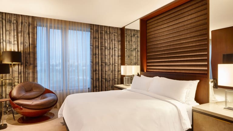 Die Zimmer sind geschmackvoll eingerichtet und bieten eine Aussicht auf die Schrägseilbrücke Estaiada sowie die Skyline von São Paulo. Die Ausstattung umfasst einen Safe, eine Minibar, Telefon, Sat-TV und WLAN. Die Badezimmer sind mit einer Dusche und einer Badewanne ausgestattet; Haartrockner und Telefon sind ebenfalls vorhanden. Es stehen auch rollstuhlgerechte Zimmer mit barrierefreiem Bad zur Verfügung.