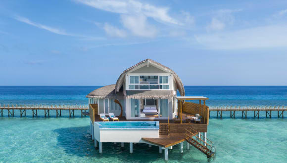 Das Hotel bietet verschiedene Villentypen, darunter Overwater Pool Villen und Beach Pool Villen, die jeweils über luxuriöse Annehmlichkeiten wie private Pools, Klimaanlage, WLAN, Minibar und Flatscreen-TV verfügen. Jede Villa ist geschmackvoll mit Materialien ausgestattet, die von der Umgebung inspiriert sind und bieten eine private Terrasse sowie einen atemberaubenden Meerblick.