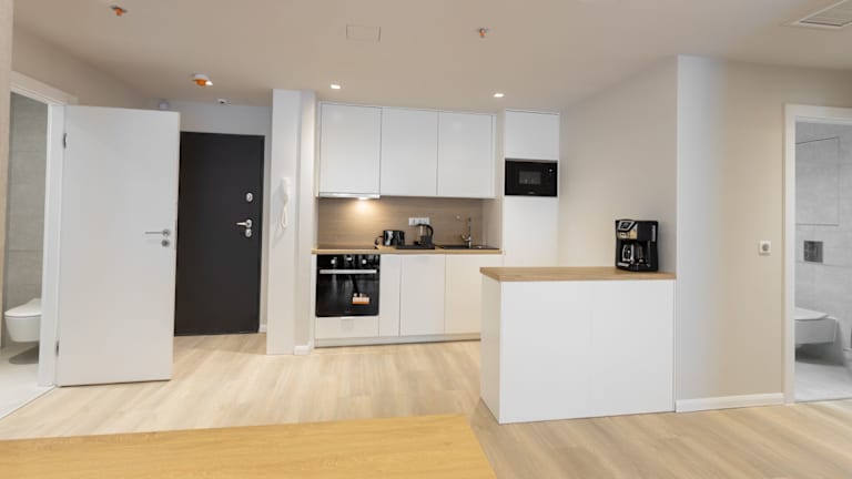 Die Zimmer der K46 Residence sind mit einem Schlafsofa, einem Sitzbereich und einem Flachbild-TV mit Satellitenkanälen ausgestattet. Jede Wohneinheit hat eine gut ausgestattete Küche mit einem Essbereich, einem Kühlschrank, Geschirrspüler, Ofen, Kaffeemaschine und Wasserkocher sowie ein eigenes Badezimmer mit Haartrockner. Zusätzliche Annehmlichkeiten wie ein Safe sind ebenfalls vorhanden.