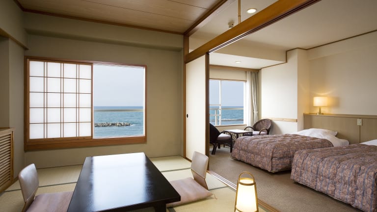 Das Kaike Grand Hotel Tensui verfügt über 102 Zimmer, die auf 7 Etagen verteilt sind. Die Zimmer sind komfortabel eingerichtet und verfügen über eine Klimaanlage, einen Kühlschrank und eine Tee-/Kaffeemaschine. WLAN ist in allen Zimmern verfügbar. Die Badezimmer sind mit einer Dusche, einer Badewanne und einem Bidet ausgestattet. Kosmetikartikel werden bereitgestellt.