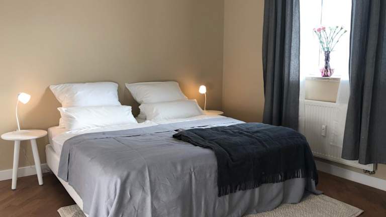 Die Ferienwohnung besteht aus zwei Schlafzimmern, einem Wohnzimmer und einer voll ausgestatteten Küche mit Kühlschrank und Kaffeemaschine. Zur Ausstattung gehört zudem ein Badezimmer mit Dusche und Haartrockner. Handtücher und Bettwäsche werden bereitgestellt. Die Unterkunft ist barrierefrei zugänglich und bietet Familienzimmer.